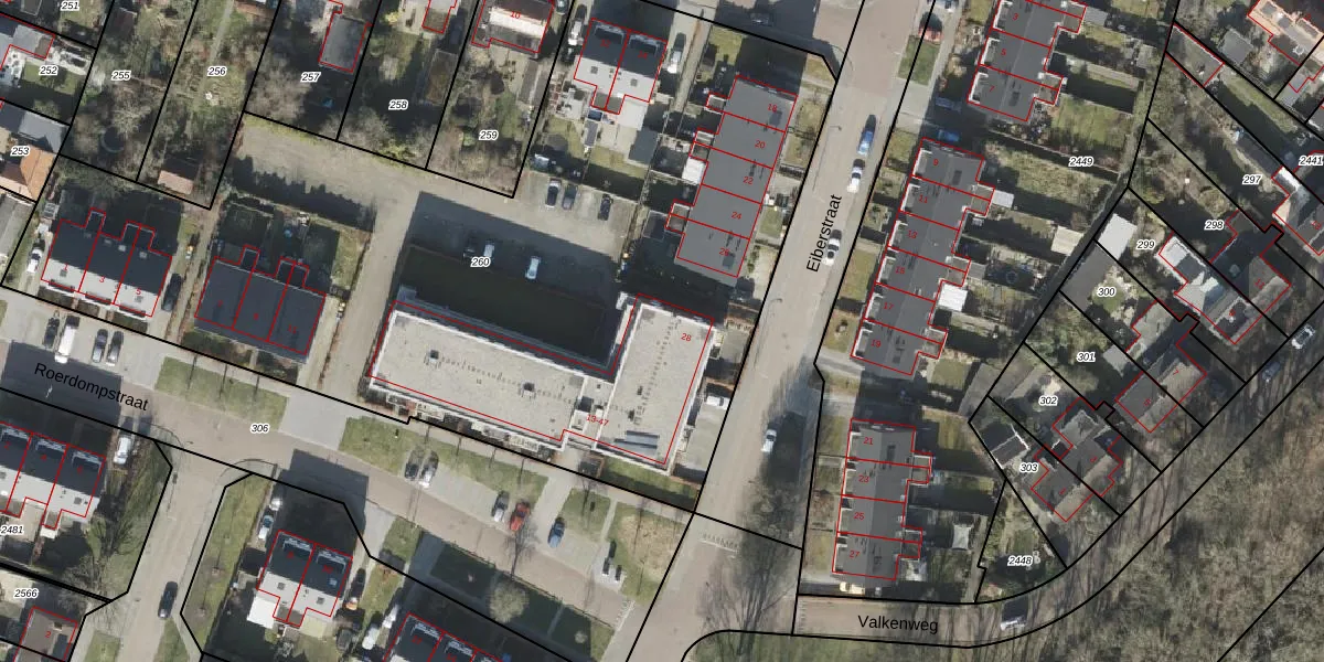 Het perceel waarop Roerdompstraat 39 staat heeft een oppervlakte van 5021 m². Dit is een zeer groot perceel. De perceeloppervlakte wordt geregistreerd door het Kadaster. Gedetailleerde informatie over de maten van dit perceel kunt u vinden in het rapport Kadastrale kaart met maatvoering van Roerdompstraat 39.