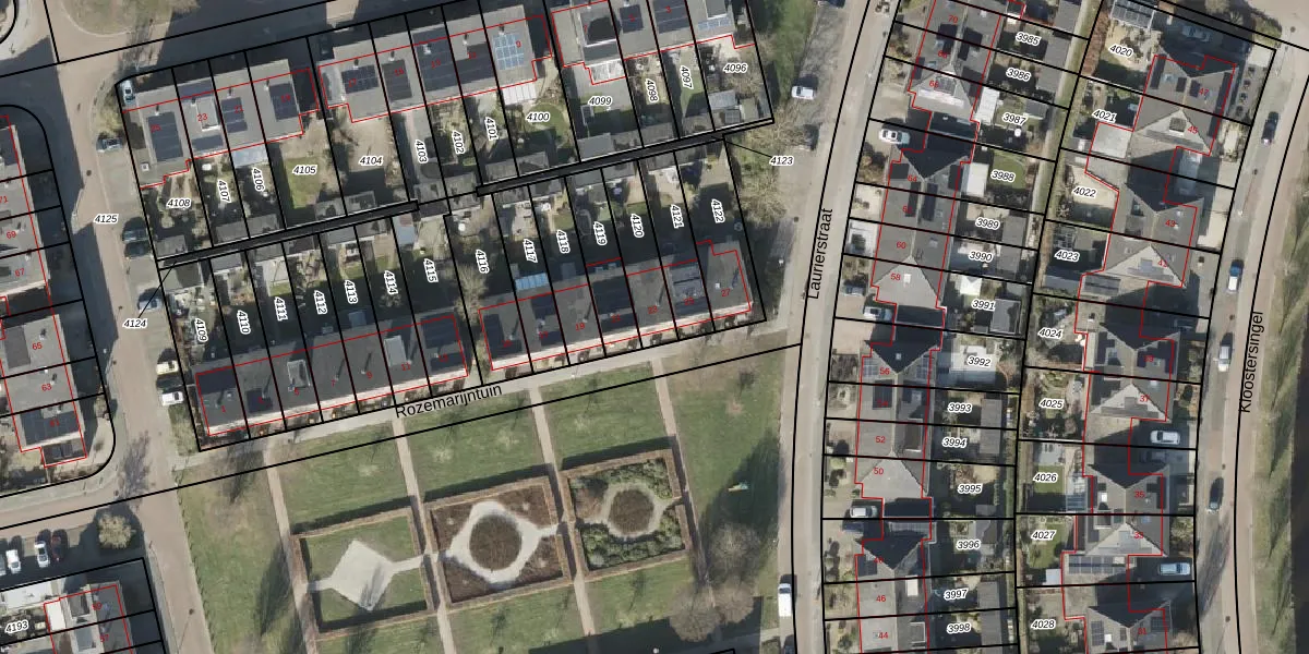 Gebruik de zoekbalk of klik op een perceel voor informatie over de adressen binnen dit perceel.