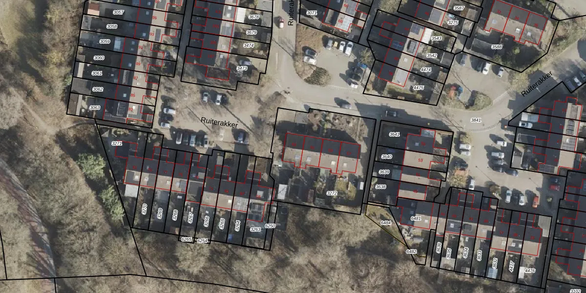 Het perceel waarop Ruiterakker 63 staat heeft een oppervlakte van 1069 m². Dit is een zeer groot perceel. De perceeloppervlakte wordt geregistreerd door het Kadaster. Gedetailleerde informatie over de maten van dit perceel kunt u vinden in het rapport Kadastrale kaart met maatvoering van Ruiterakker 63.