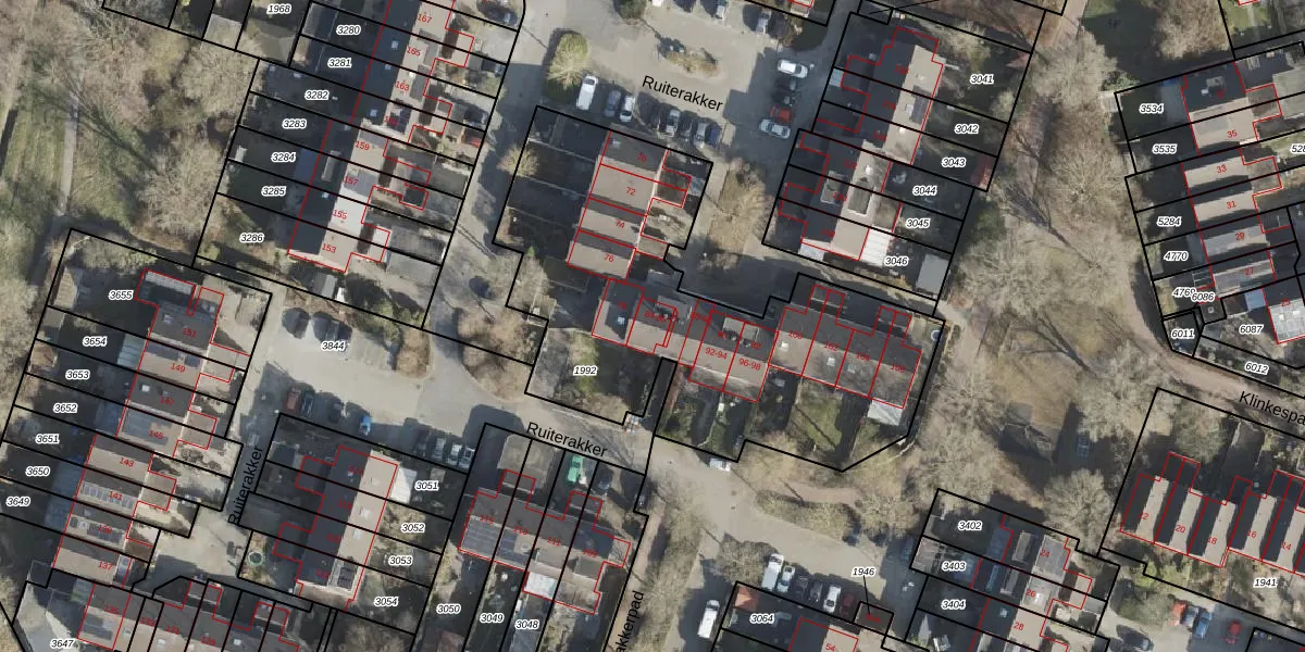 Het perceel waarop Ruiterakker 84 staat heeft een oppervlakte van 1983 m². Dit is een zeer groot perceel. De perceeloppervlakte wordt geregistreerd door het Kadaster. Gedetailleerde informatie over de maten van dit perceel kunt u vinden in het rapport Kadastrale kaart met maatvoering van Ruiterakker 84.