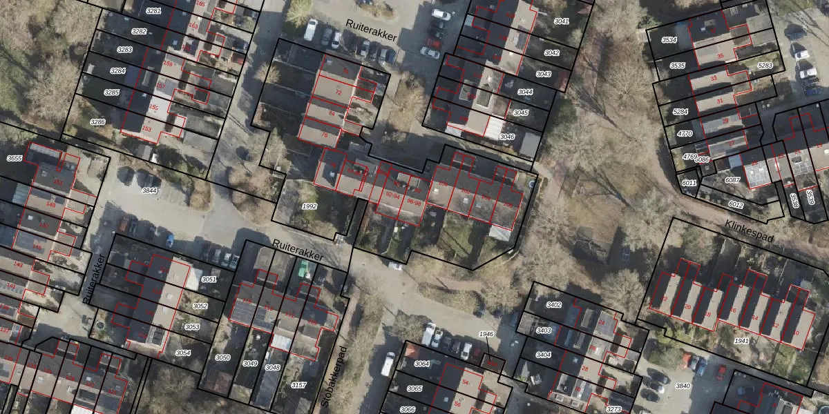 Het perceel waarop Ruiterakker 96 staat heeft een oppervlakte van 1983 m². Dit is een zeer groot perceel. De perceeloppervlakte wordt geregistreerd door het Kadaster. Gedetailleerde informatie over de maten van dit perceel kunt u vinden in het rapport Kadastrale kaart met maatvoering van Ruiterakker 96.