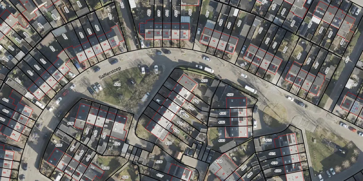 Gebruik de zoekbalk of klik op een perceel voor informatie over de adressen binnen dit perceel.