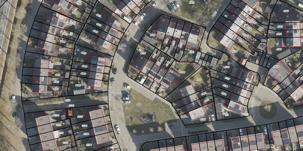 Gebruik de zoekbalk of klik op een perceel voor informatie over de adressen binnen dit perceel.