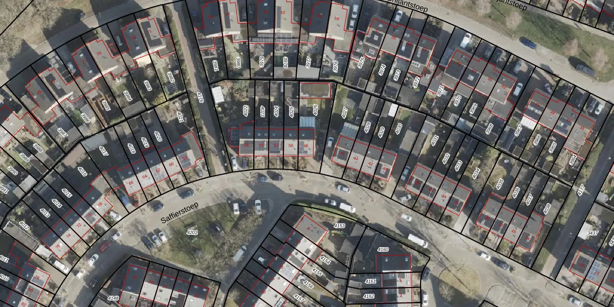 Het perceel waarop Saffierstoep 48 staat heeft een oppervlakte van 292 m². Dit is een middelgroot perceel. De perceeloppervlakte wordt geregistreerd door het Kadaster. Gedetailleerde informatie over de maten van dit perceel kunt u vinden in het rapport Kadastrale kaart met maatvoering van Saffierstoep 48.
