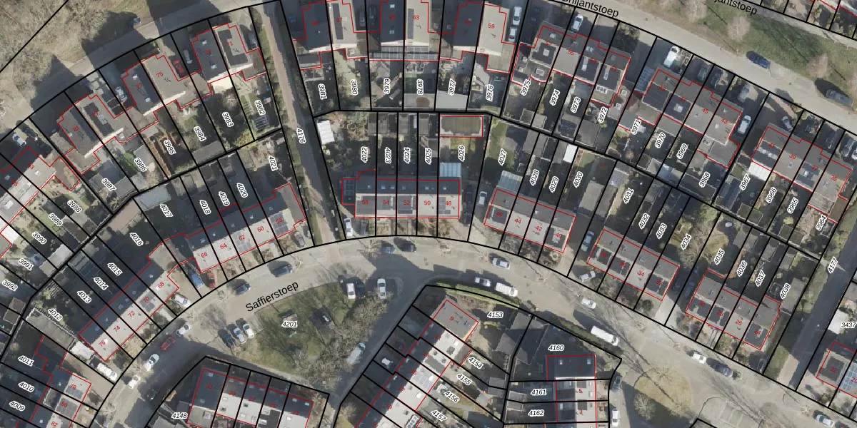 Het perceel waarop Saffierstoep 50 staat heeft een oppervlakte van 140 m². Dit is een middelgroot perceel. De perceeloppervlakte wordt geregistreerd door het Kadaster. Gedetailleerde informatie over de maten van dit perceel kunt u vinden in het rapport Kadastrale kaart met maatvoering van Saffierstoep 50.