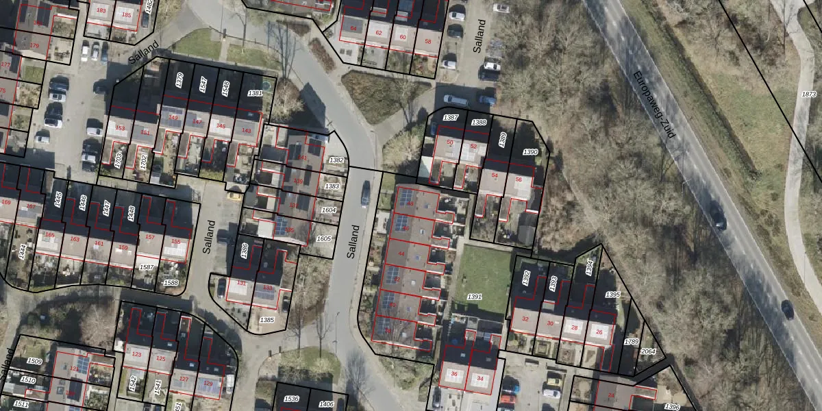 Het perceel waarop Salland 48 staat heeft een oppervlakte van 1591 m². Dit is een zeer groot perceel. De perceeloppervlakte wordt geregistreerd door het Kadaster. Gedetailleerde informatie over de maten van dit perceel kunt u vinden in het rapport Kadastrale kaart met maatvoering van Salland 48.