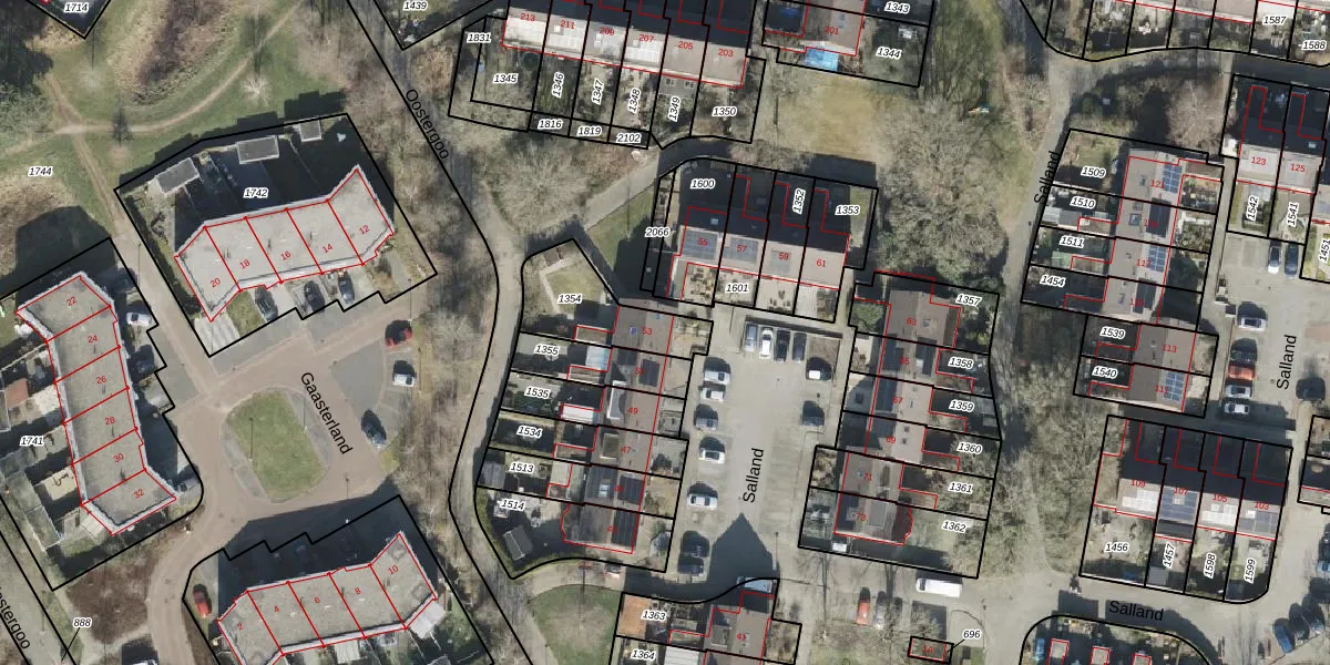 Gebruik de zoekbalk of klik op een perceel voor informatie over de adressen binnen dit perceel.
