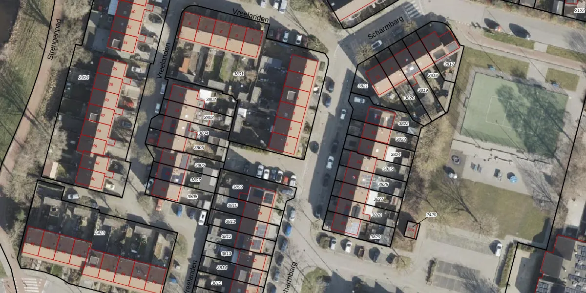 Het perceel waarop Scharmbarg 12 staat heeft een oppervlakte van 1684 m². Dit is een zeer groot perceel. De perceeloppervlakte wordt geregistreerd door het Kadaster. Gedetailleerde informatie over de maten van dit perceel kunt u vinden in het rapport Kadastrale kaart met maatvoering van Scharmbarg 12.