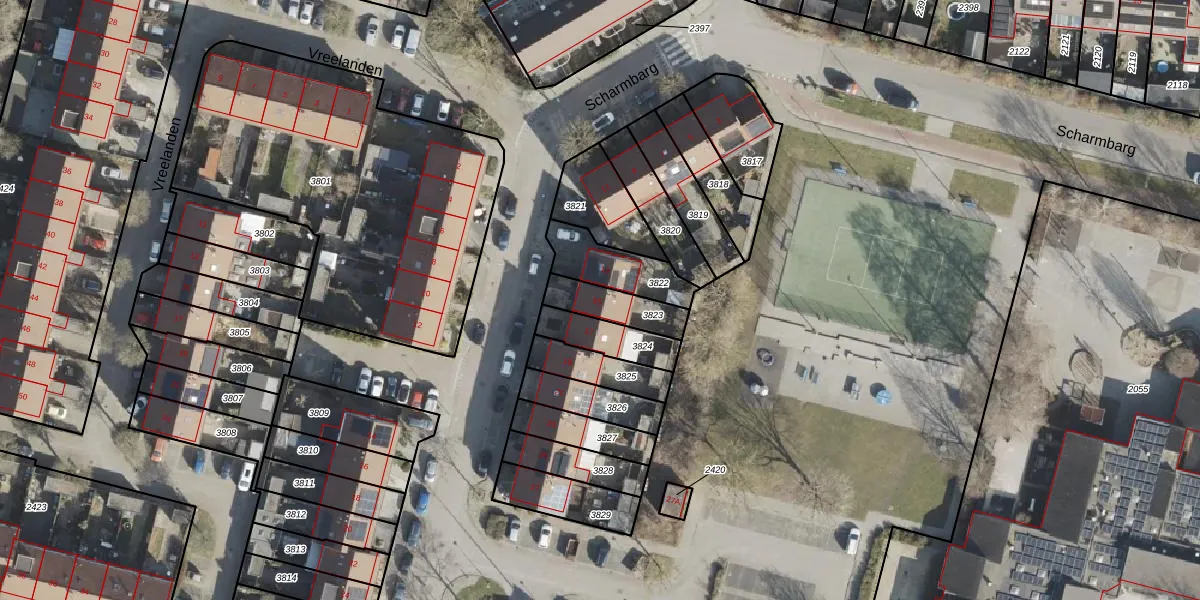 Gebruik de zoekbalk of klik op een perceel voor informatie over de adressen binnen dit perceel.