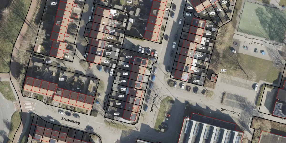 Gebruik de zoekbalk of klik op een perceel voor informatie over de adressen binnen dit perceel.