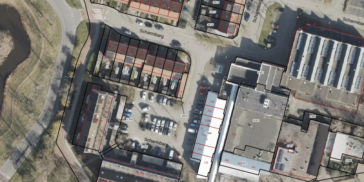 Gebruik de zoekbalk of klik op een perceel voor informatie over de adressen binnen dit perceel.