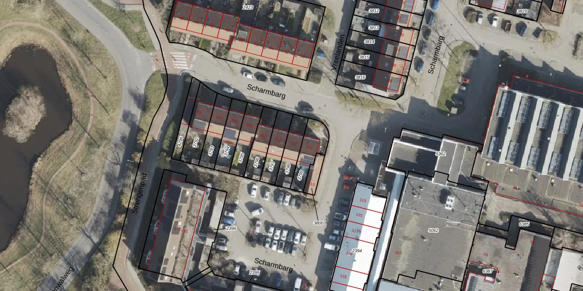 Gebruik de zoekbalk of klik op een perceel voor informatie over de adressen binnen dit perceel.
