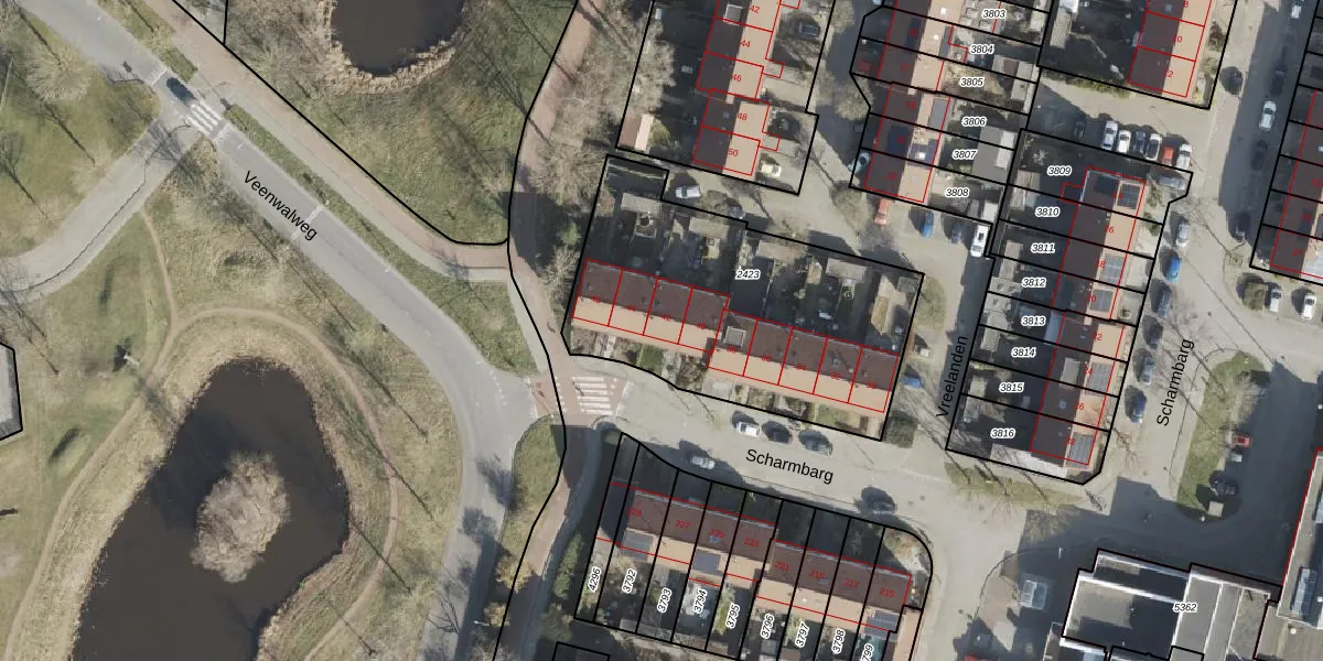 Het perceel waarop Scharmbarg 42 staat heeft een oppervlakte van 1354 m². Dit is een zeer groot perceel. De perceeloppervlakte wordt geregistreerd door het Kadaster. Gedetailleerde informatie over de maten van dit perceel kunt u vinden in het rapport Kadastrale kaart met maatvoering van Scharmbarg 42.