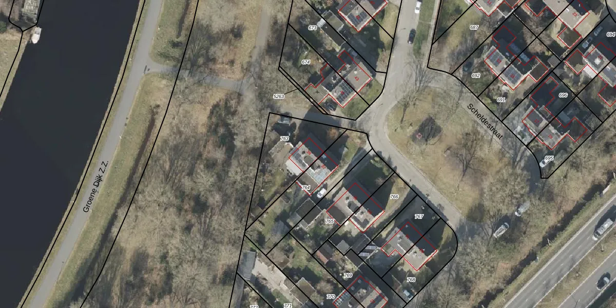 Het perceel waarop Scheldestraat 39 staat heeft een oppervlakte van 510 m². Dit is een groot perceel. De perceeloppervlakte wordt geregistreerd door het Kadaster. Gedetailleerde informatie over de maten van dit perceel kunt u vinden in het rapport Kadastrale kaart met maatvoering van Scheldestraat 39.