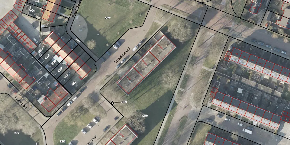 Het perceel waarop Schultestraat 108 staat heeft een oppervlakte van 4736 m². Dit is een zeer groot perceel. De perceeloppervlakte wordt geregistreerd door het Kadaster. Gedetailleerde informatie over de maten van dit perceel kunt u vinden in het rapport Kadastrale kaart met maatvoering van Schultestraat 108.