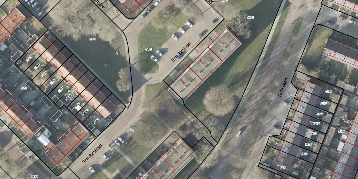 Het perceel waarop Schultestraat 44 staat heeft een oppervlakte van 4736 m². Dit is een zeer groot perceel. De perceeloppervlakte wordt geregistreerd door het Kadaster. Gedetailleerde informatie over de maten van dit perceel kunt u vinden in het rapport Kadastrale kaart met maatvoering van Schultestraat 44.