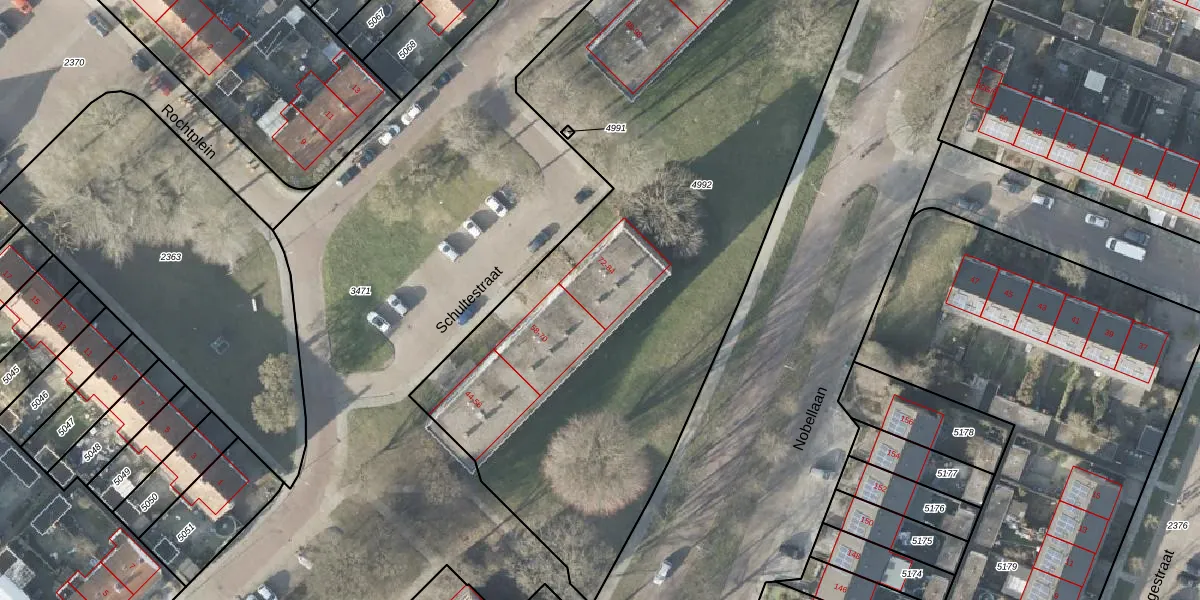 Het perceel waarop Schultestraat 76 staat heeft een oppervlakte van 4736 m². Dit is een zeer groot perceel. De perceeloppervlakte wordt geregistreerd door het Kadaster. Gedetailleerde informatie over de maten van dit perceel kunt u vinden in het rapport Kadastrale kaart met maatvoering van Schultestraat 76.