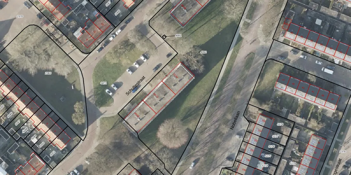 Het perceel waarop Schultestraat 80 staat heeft een oppervlakte van 4736 m². Dit is een zeer groot perceel. De perceeloppervlakte wordt geregistreerd door het Kadaster. Gedetailleerde informatie over de maten van dit perceel kunt u vinden in het rapport Kadastrale kaart met maatvoering van Schultestraat 80.