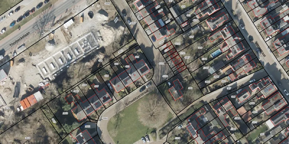 Gebruik de zoekbalk of klik op een perceel voor informatie over de adressen binnen dit perceel.