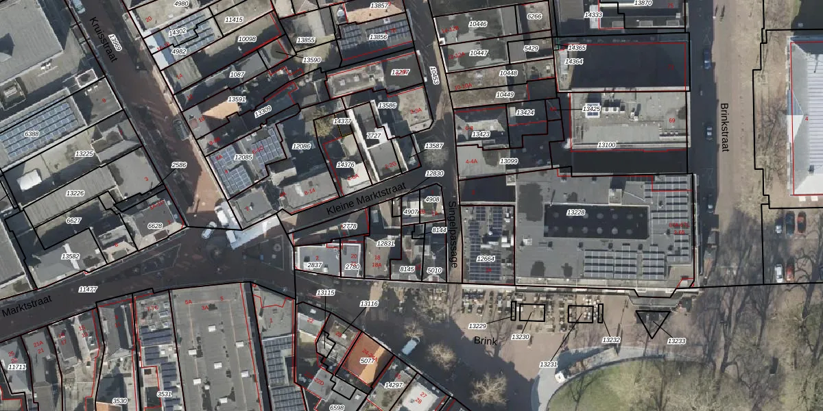Gebruik de zoekbalk of klik op een perceel voor informatie over de adressen binnen dit perceel.