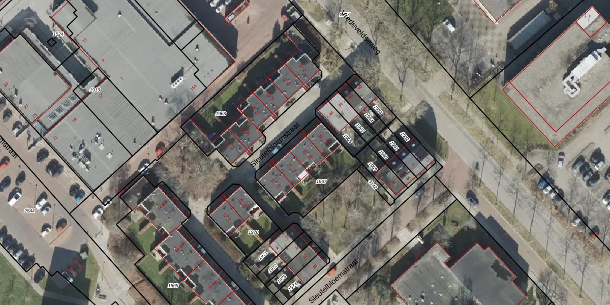 Het perceel waarop Sleutelbloemstraat 26 staat heeft een oppervlakte van 594 m². Dit is een groot perceel. De perceeloppervlakte wordt geregistreerd door het Kadaster. Gedetailleerde informatie over de maten van dit perceel kunt u vinden in het rapport Kadastrale kaart met maatvoering van Sleutelbloemstraat 26.