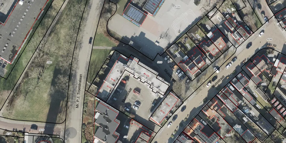 Het perceel waarop Sluisstraat 125 staat heeft een oppervlakte van 800 m². Dit is een groot perceel. De perceeloppervlakte wordt geregistreerd door het Kadaster. Gedetailleerde informatie over de maten van dit perceel kunt u vinden in het rapport Kadastrale kaart met maatvoering van Sluisstraat 125.