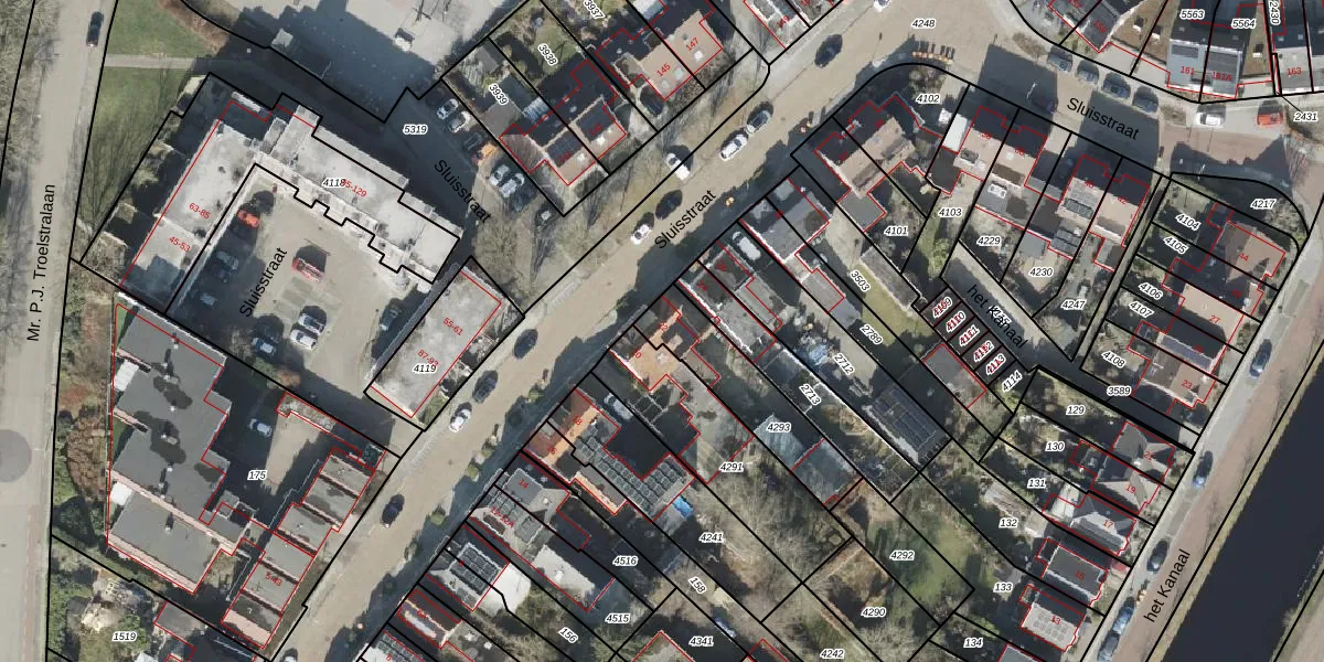 Het perceel waarop Sluisstraat 22 staat heeft een oppervlakte van 326 m². Dit is een groot perceel. De perceeloppervlakte wordt geregistreerd door het Kadaster. Gedetailleerde informatie over de maten van dit perceel kunt u vinden in het rapport Kadastrale kaart met maatvoering van Sluisstraat 22.