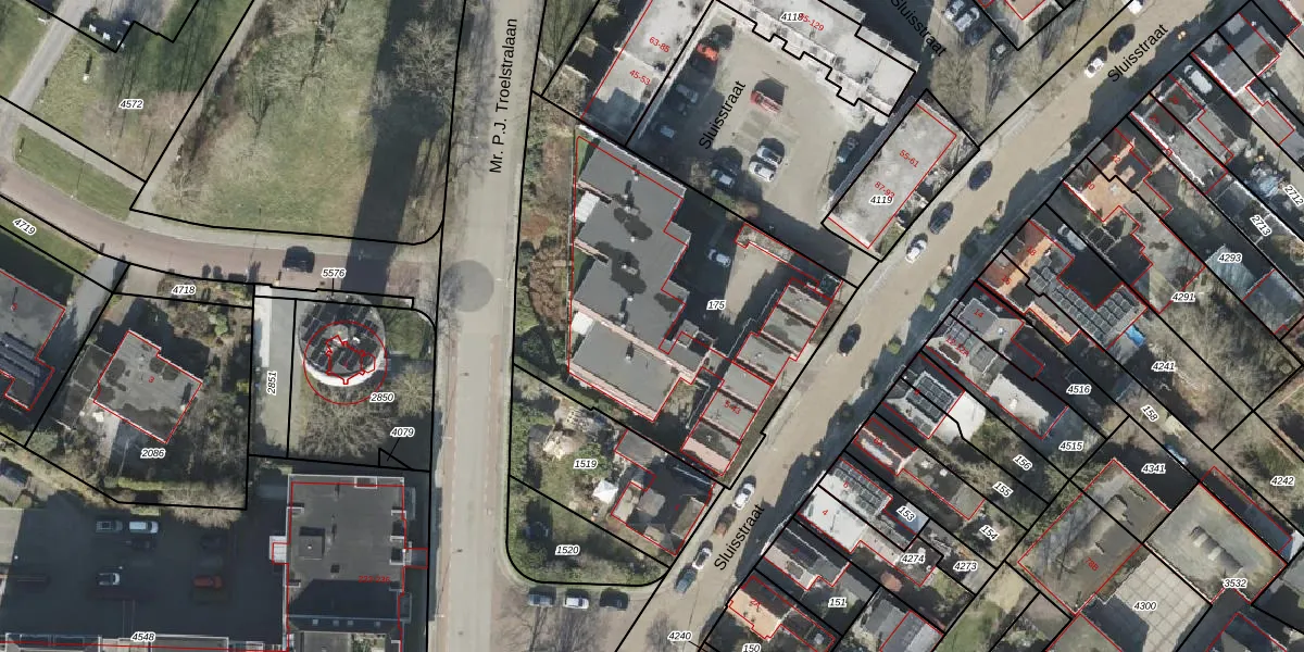 Het perceel waarop Sluisstraat 25 staat heeft een oppervlakte van 1800 m². Dit is een zeer groot perceel. De perceeloppervlakte wordt geregistreerd door het Kadaster. Gedetailleerde informatie over de maten van dit perceel kunt u vinden in het rapport Kadastrale kaart met maatvoering van Sluisstraat 25.