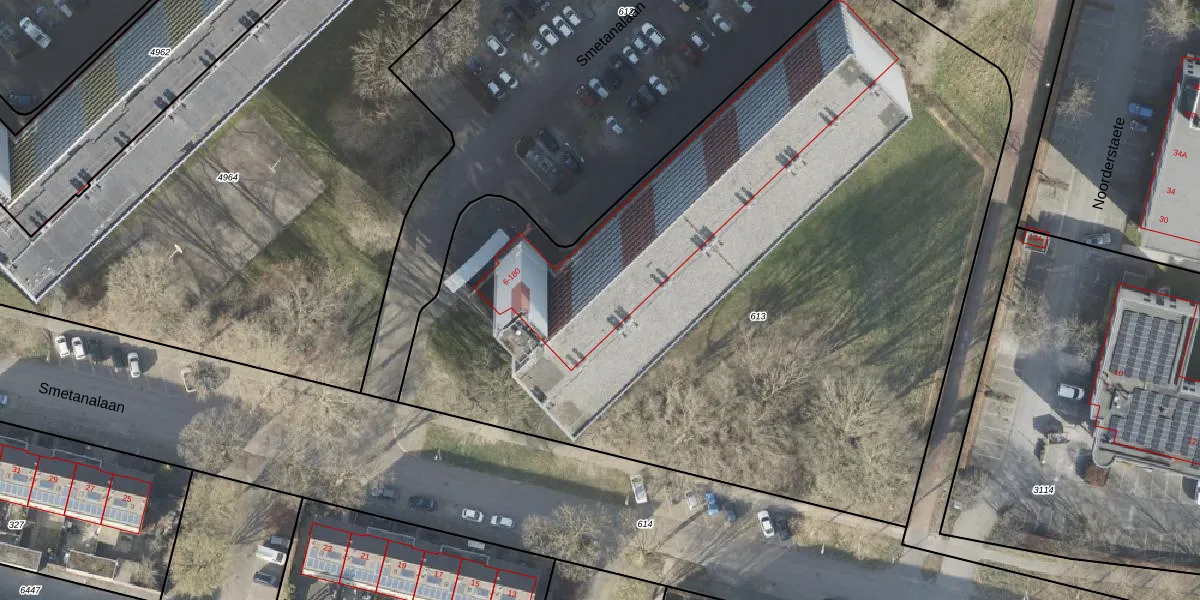 Het perceel waarop Smetanalaan 104 staat heeft een oppervlakte van 5288 m². Dit is een zeer groot perceel. De perceeloppervlakte wordt geregistreerd door het Kadaster. Gedetailleerde informatie over de maten van dit perceel kunt u vinden in het rapport Kadastrale kaart met maatvoering van Smetanalaan 104.