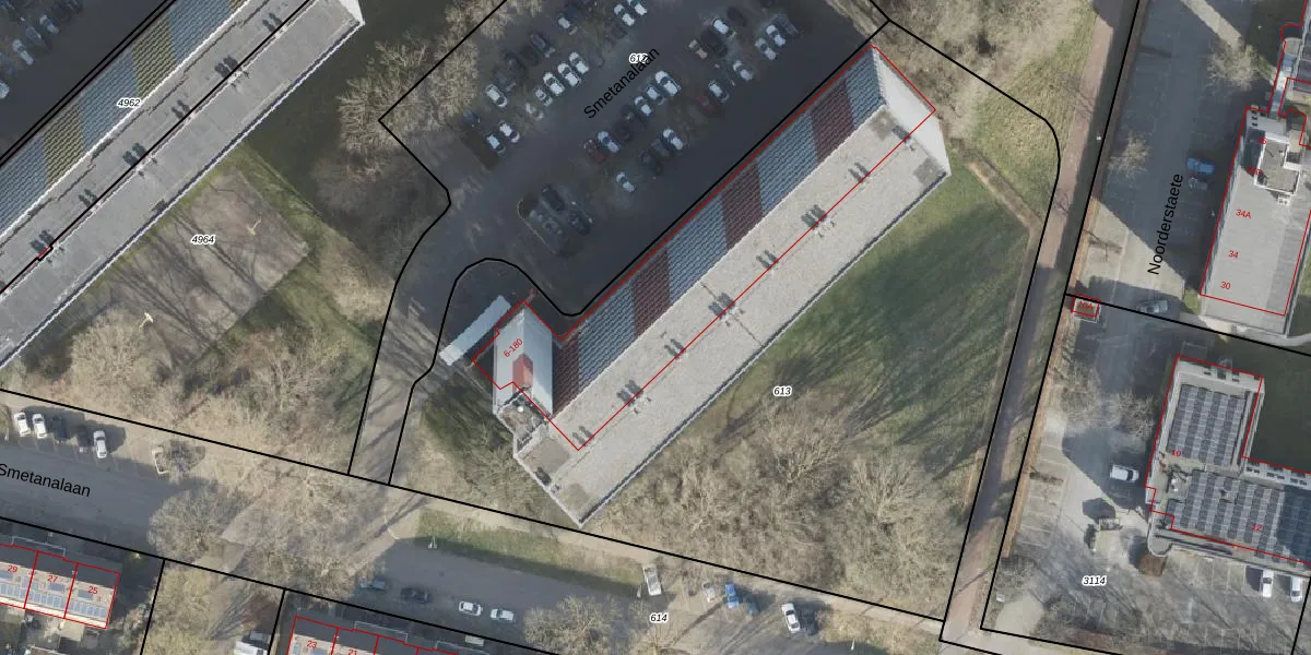 Het perceel waarop Smetanalaan 106 staat heeft een oppervlakte van 5288 m². Dit is een zeer groot perceel. De perceeloppervlakte wordt geregistreerd door het Kadaster. Gedetailleerde informatie over de maten van dit perceel kunt u vinden in het rapport Kadastrale kaart met maatvoering van Smetanalaan 106.