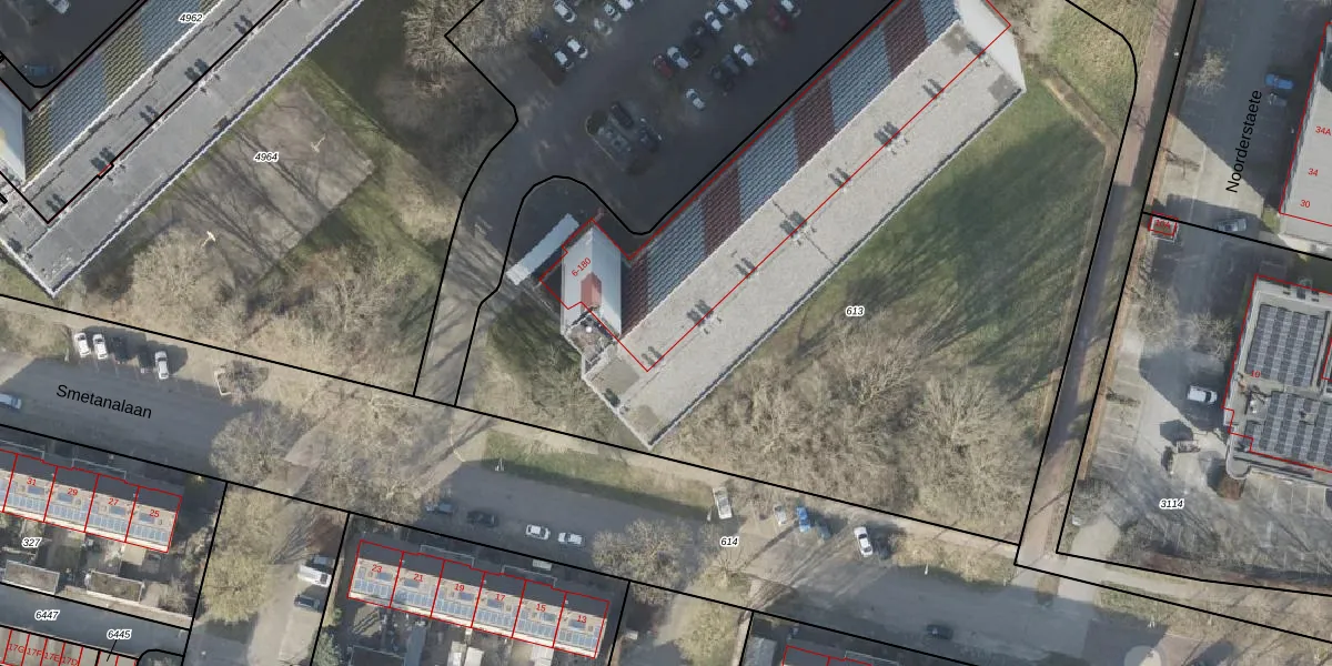 Het perceel waarop Smetanalaan 150 staat heeft een oppervlakte van 5288 m². Dit is een zeer groot perceel. De perceeloppervlakte wordt geregistreerd door het Kadaster. Gedetailleerde informatie over de maten van dit perceel kunt u vinden in het rapport Kadastrale kaart met maatvoering van Smetanalaan 150.