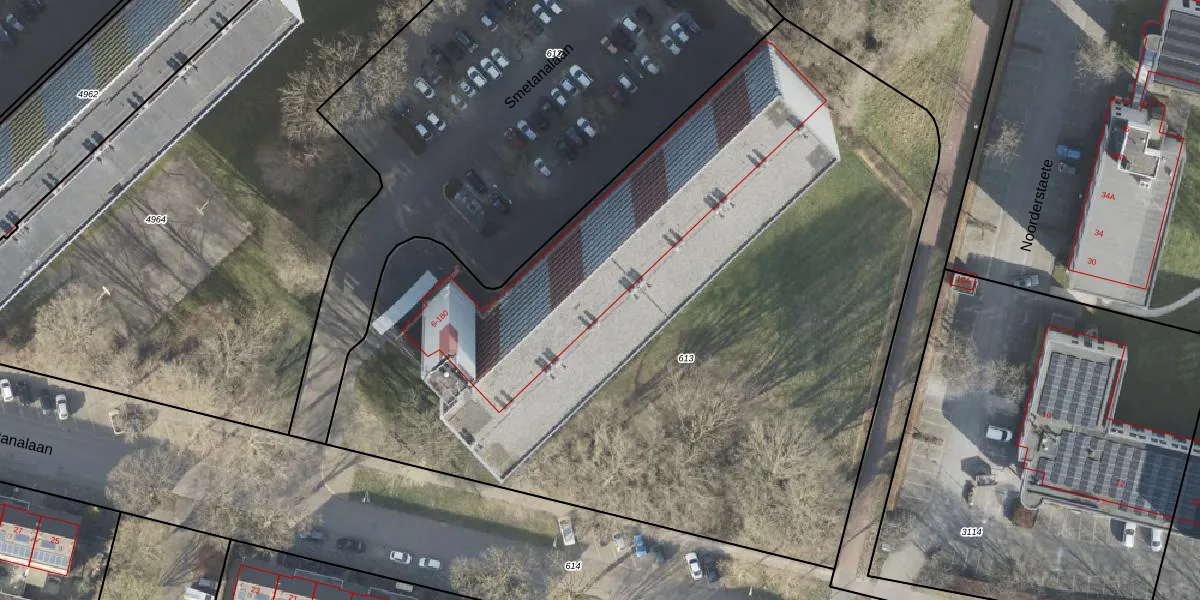 Het perceel waarop Smetanalaan 154 staat heeft een oppervlakte van 5288 m². Dit is een zeer groot perceel. De perceeloppervlakte wordt geregistreerd door het Kadaster. Gedetailleerde informatie over de maten van dit perceel kunt u vinden in het rapport Kadastrale kaart met maatvoering van Smetanalaan 154.
