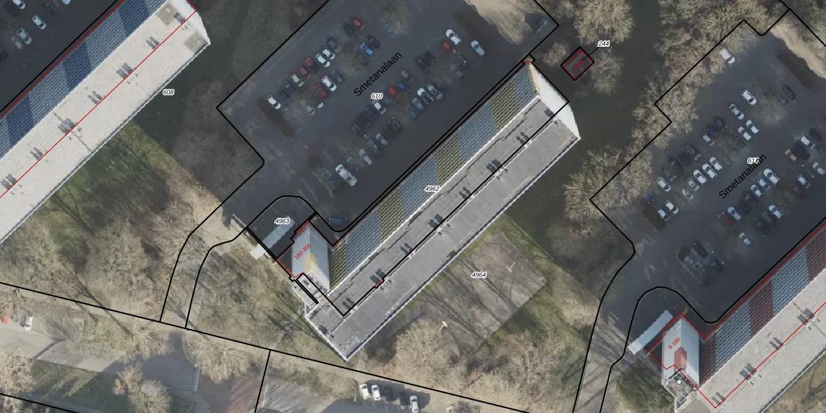 Het perceel waarop Smetanalaan 252 staat heeft een oppervlakte van 1168 m². Dit is een zeer groot perceel. De perceeloppervlakte wordt geregistreerd door het Kadaster. Gedetailleerde informatie over de maten van dit perceel kunt u vinden in het rapport Kadastrale kaart met maatvoering van Smetanalaan 252.