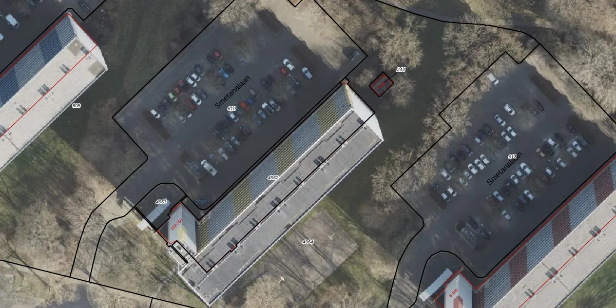 Het perceel waarop Smetanalaan 288 staat heeft een oppervlakte van 1168 m². Dit is een zeer groot perceel. De perceeloppervlakte wordt geregistreerd door het Kadaster. Gedetailleerde informatie over de maten van dit perceel kunt u vinden in het rapport Kadastrale kaart met maatvoering van Smetanalaan 288.