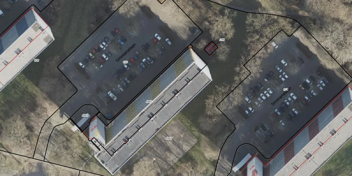Het perceel waarop Smetanalaan 336 staat heeft een oppervlakte van 1168 m². Dit is een zeer groot perceel. De perceeloppervlakte wordt geregistreerd door het Kadaster. Gedetailleerde informatie over de maten van dit perceel kunt u vinden in het rapport Kadastrale kaart met maatvoering van Smetanalaan 336.