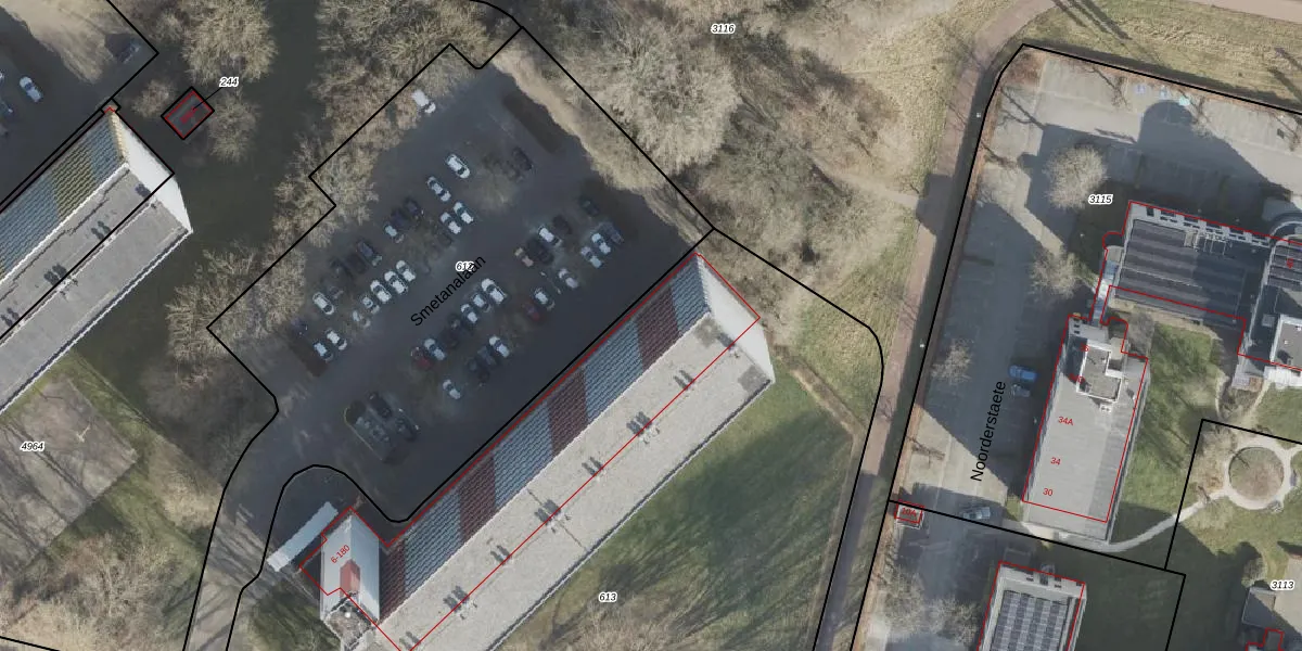 Het perceel waarop Smetanalaan 34 staat heeft een oppervlakte van 5288 m². Dit is een zeer groot perceel. De perceeloppervlakte wordt geregistreerd door het Kadaster. Gedetailleerde informatie over de maten van dit perceel kunt u vinden in het rapport Kadastrale kaart met maatvoering van Smetanalaan 34.