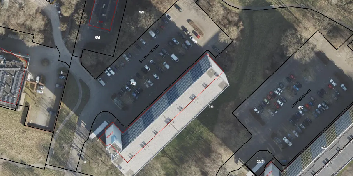 Het perceel waarop Smetanalaan 368 staat heeft een oppervlakte van 6946 m². Dit is een zeer groot perceel. De perceeloppervlakte wordt geregistreerd door het Kadaster. Gedetailleerde informatie over de maten van dit perceel kunt u vinden in het rapport Kadastrale kaart met maatvoering van Smetanalaan 368.