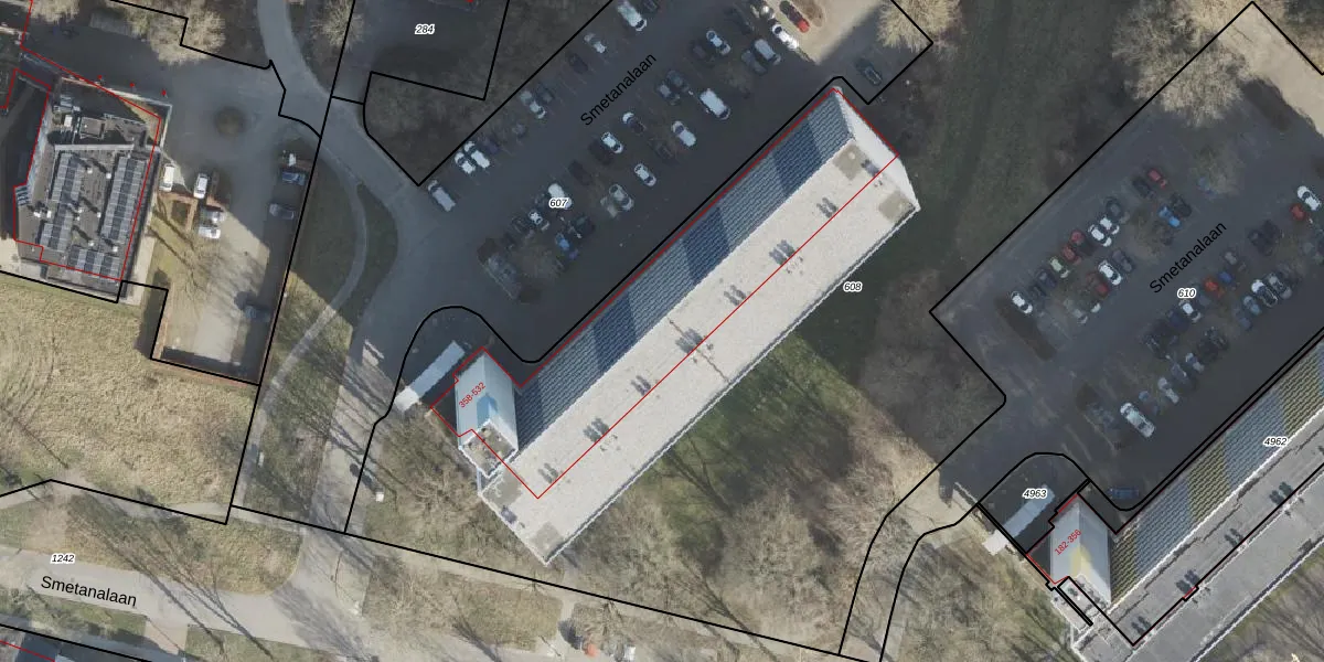 Het perceel waarop Smetanalaan 460 staat heeft een oppervlakte van 6946 m². Dit is een zeer groot perceel. De perceeloppervlakte wordt geregistreerd door het Kadaster. Gedetailleerde informatie over de maten van dit perceel kunt u vinden in het rapport Kadastrale kaart met maatvoering van Smetanalaan 460.