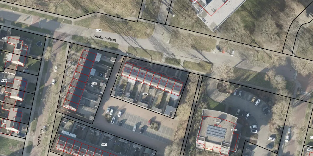 Het perceel waarop Smetanalaan 55 staat heeft een oppervlakte van 1260 m². Dit is een zeer groot perceel. De perceeloppervlakte wordt geregistreerd door het Kadaster. Gedetailleerde informatie over de maten van dit perceel kunt u vinden in het rapport Kadastrale kaart met maatvoering van Smetanalaan 55.