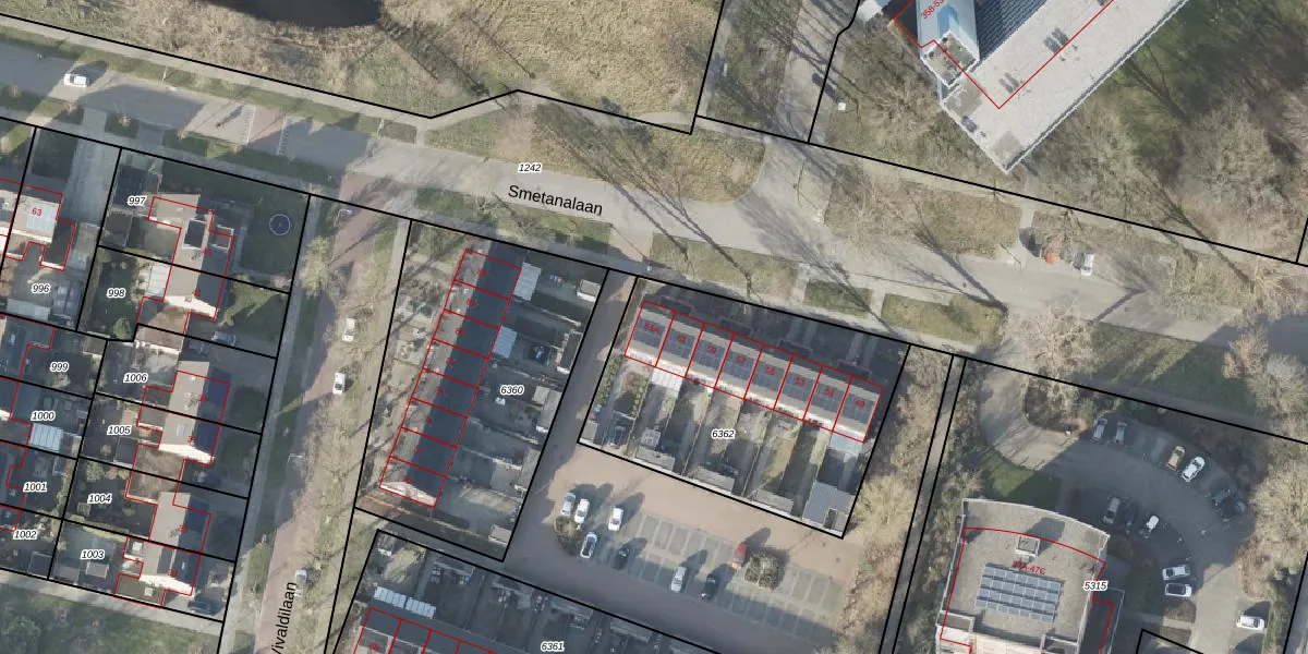 Het perceel waarop Smetanalaan 61-A staat heeft een oppervlakte van 1260 m². Dit is een zeer groot perceel. De perceeloppervlakte wordt geregistreerd door het Kadaster. Gedetailleerde informatie over de maten van dit perceel kunt u vinden in het rapport Kadastrale kaart met maatvoering van Smetanalaan 61-A.