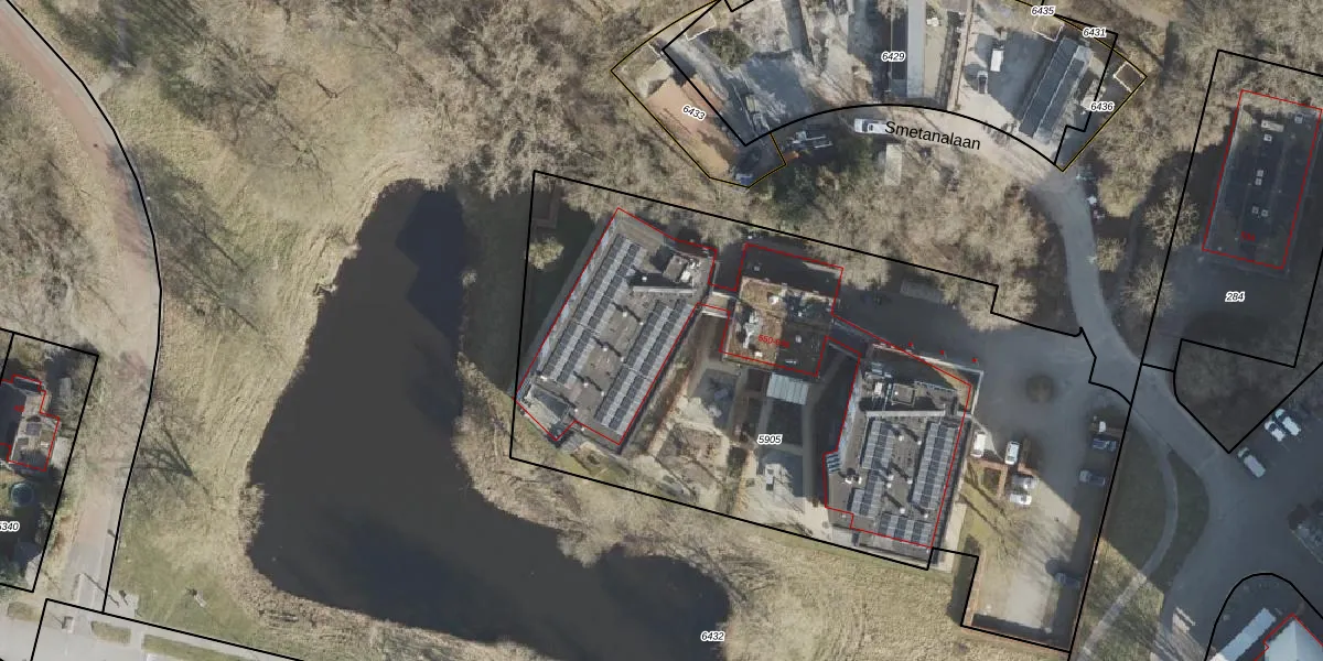 Het perceel waarop Smetanalaan 628 staat heeft een oppervlakte van 3995 m². Dit is een zeer groot perceel. De perceeloppervlakte wordt geregistreerd door het Kadaster. Gedetailleerde informatie over de maten van dit perceel kunt u vinden in het rapport Kadastrale kaart met maatvoering van Smetanalaan 628.