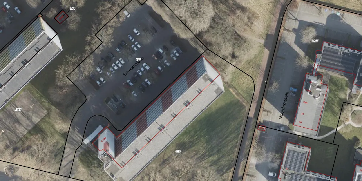 Het perceel waarop Smetanalaan 64 staat heeft een oppervlakte van 5288 m². Dit is een zeer groot perceel. De perceeloppervlakte wordt geregistreerd door het Kadaster. Gedetailleerde informatie over de maten van dit perceel kunt u vinden in het rapport Kadastrale kaart met maatvoering van Smetanalaan 64.