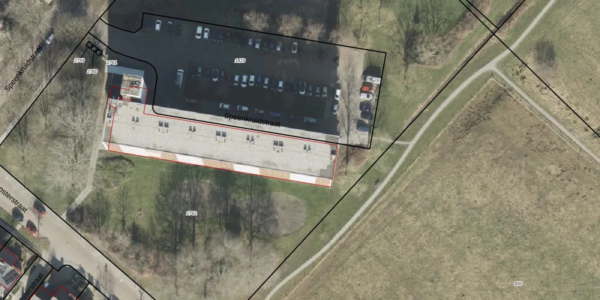 Het perceel waarop Speenkruidstraat 381 staat heeft een oppervlakte van 9544 m². Dit is een zeer groot perceel. De perceeloppervlakte wordt geregistreerd door het Kadaster. Gedetailleerde informatie over de maten van dit perceel kunt u vinden in het rapport Kadastrale kaart met maatvoering van Speenkruidstraat 381.