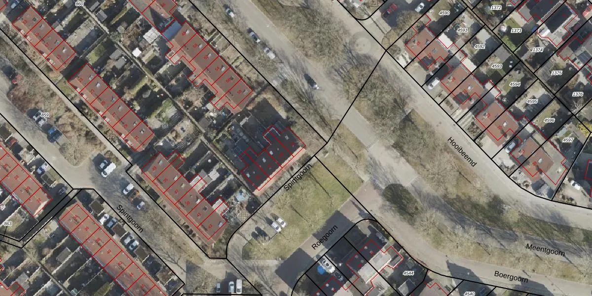 Het perceel waarop Spintgoorn 51 staat heeft een oppervlakte van 1,0 ha. Dit is een zeer groot perceel. De perceeloppervlakte wordt geregistreerd door het Kadaster. Gedetailleerde informatie over de maten van dit perceel kunt u vinden in het rapport Kadastrale kaart met maatvoering van Spintgoorn 51.