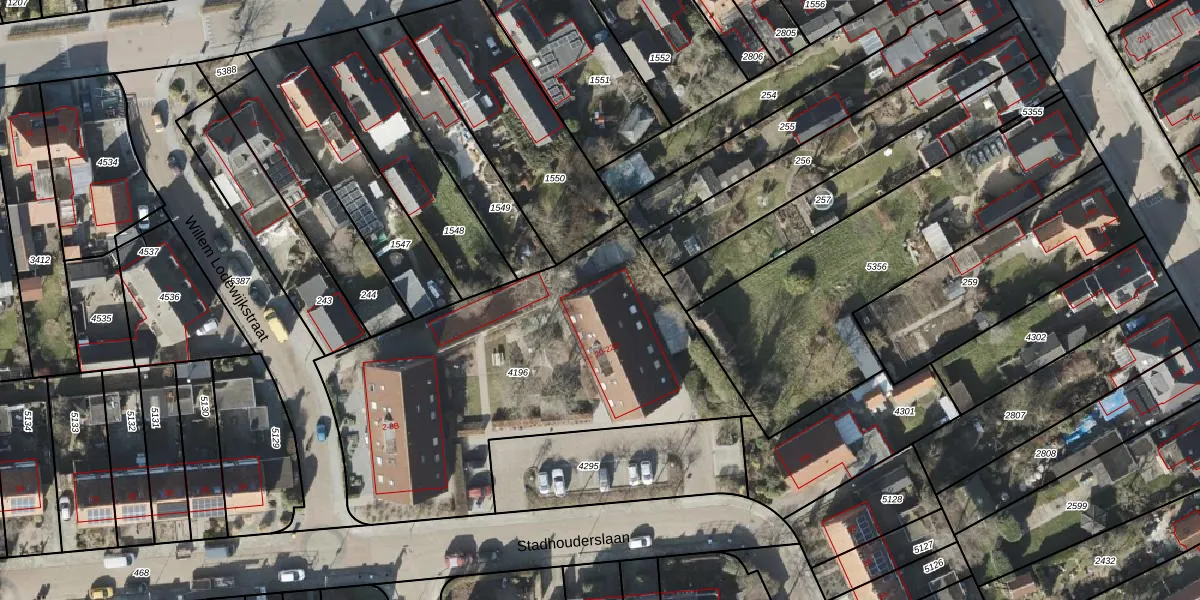 Het perceel waarop Stadhouderslaan 22-D staat heeft een oppervlakte van 1878 m². Dit is een zeer groot perceel. De perceeloppervlakte wordt geregistreerd door het Kadaster. Gedetailleerde informatie over de maten van dit perceel kunt u vinden in het rapport Kadastrale kaart met maatvoering van Stadhouderslaan 22-D.