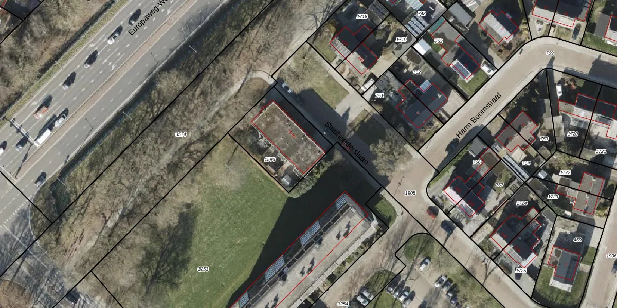Stadhouderslaan 77 is gelegen op kadastraal perceel ASN00T1593. Deze kadastrale aanduiding is uniek en wordt gebruikt door het Kadaster om eigendomsrechten en andere zakelijke rechten vast te leggen. Het perceel maakt onderdeel uit van de kadastrale gemeente Assen.