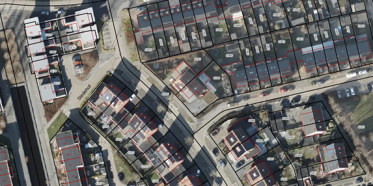 Gebruik de zoekbalk of klik op een perceel voor informatie over de adressen binnen dit perceel.