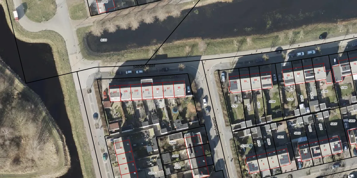 Het perceel waarop Stedewater 95 staat heeft een oppervlakte van 3687 m². Dit is een zeer groot perceel. De perceeloppervlakte wordt geregistreerd door het Kadaster. Gedetailleerde informatie over de maten van dit perceel kunt u vinden in het rapport Kadastrale kaart met maatvoering van Stedewater 95.