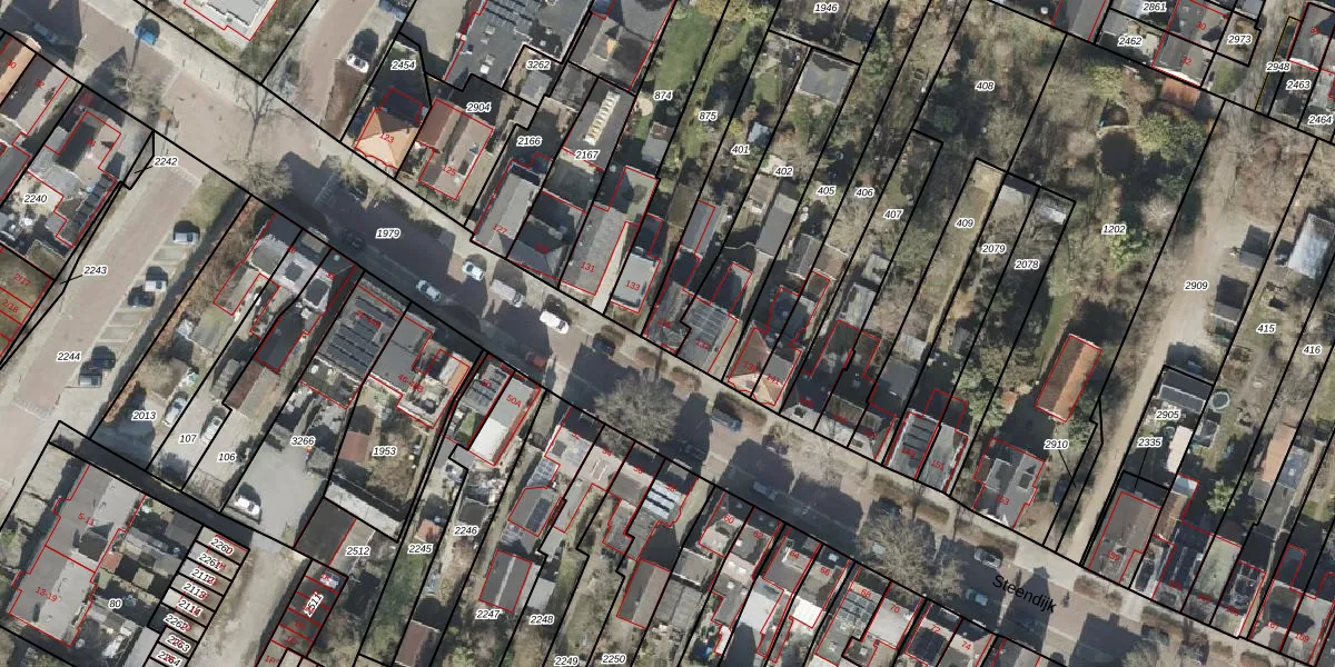 Het perceel waarop Steendijk 135 staat heeft een oppervlakte van 321 m². Dit is een groot perceel. De perceeloppervlakte wordt geregistreerd door het Kadaster. Gedetailleerde informatie over de maten van dit perceel kunt u vinden in het rapport Kadastrale kaart met maatvoering van Steendijk 135.