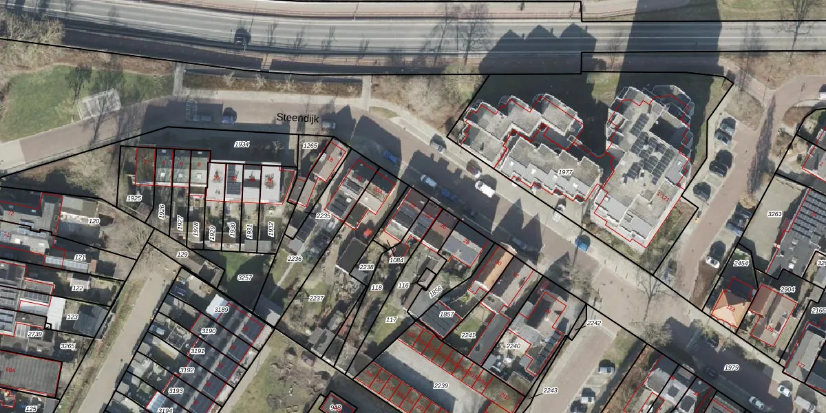 Het perceel waarop Steendijk 22 staat heeft een oppervlakte van 95 m². Dit is een klein perceel. De perceeloppervlakte wordt geregistreerd door het Kadaster. Gedetailleerde informatie over de maten van dit perceel kunt u vinden in het rapport Kadastrale kaart met maatvoering van Steendijk 22.